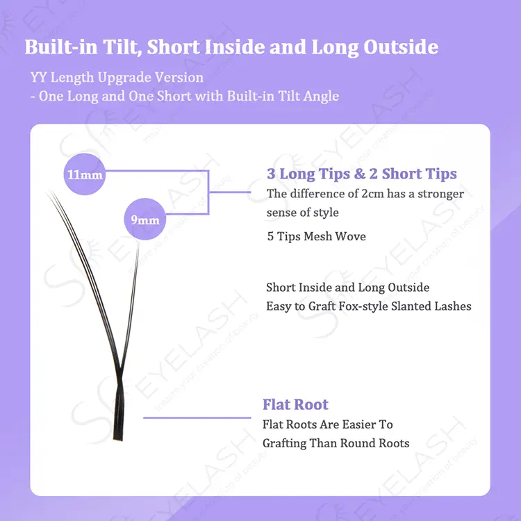 SPまつげの傾斜YYまつげの革新的なフォックスアイデザインでは、5ポイントのメッシュ織機技術を使用して、3つの長いショートエラシュと2つの短いまつげの分布を通じてアイテールを自然に伸ばします。 0.07mmのウルトラファインファイバーベースは、重いように見えることなくふわふわを確保し、8〜15mmの長さのオプションを提供し、C/D/J/M/Lカールと組み合わせて、むき出しのメイクからヘビーメイクまでさまざまなニーズを満たします。ユニークなシルバーフォイルベースのデザインにより、脱毛がより便利になり、一致するカードはパラメーターを明確に示し、まつげ技術者の操作の効率を大幅に改善します。